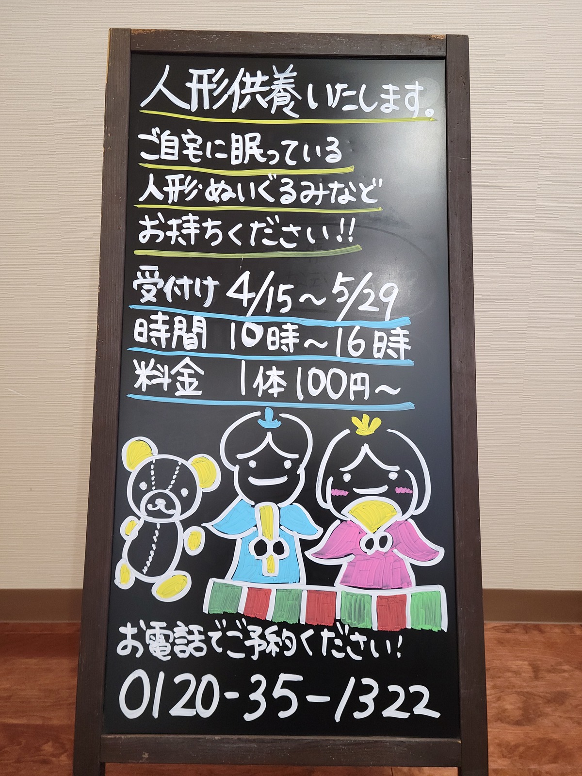 ブラックボードの内容を更新いたしました。《人形供養のお知らせ》