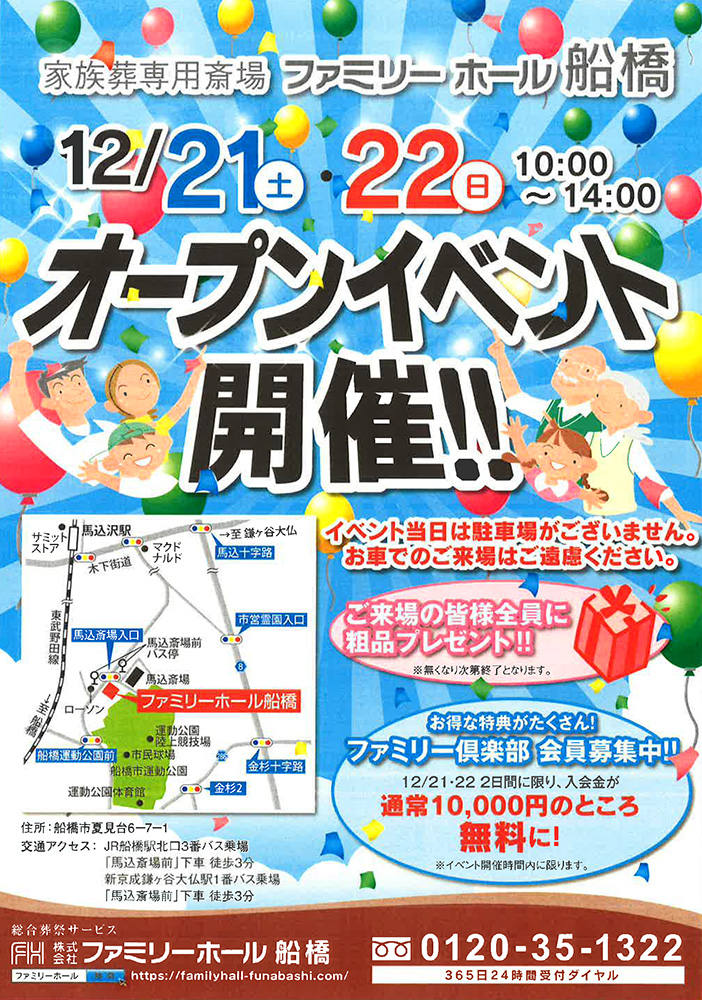 2019年12月15日(日)ファミリーホール船橋が新規オープンいたします。
