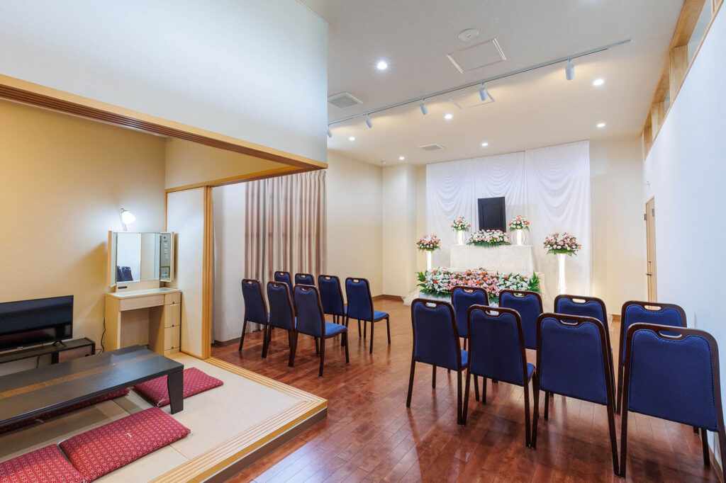遺族控室としてもご利用いただく和室には、お通夜当日、または葬儀前日にここでお泊りになる事も可能です。