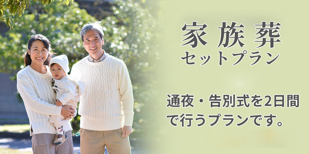 通夜式と告別式を行う通常の家族葬プラン。故人様とゆっくりと、最後のお時間をお過ごしください。
