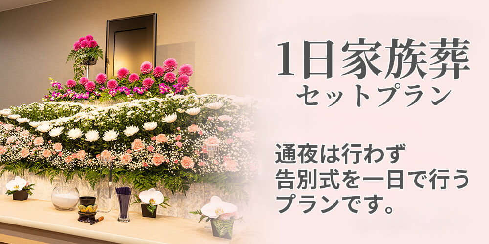 通夜式を行わない家族葬プラン。費用と時間を抑えたお別れをご希望の方におすすめとなっております。